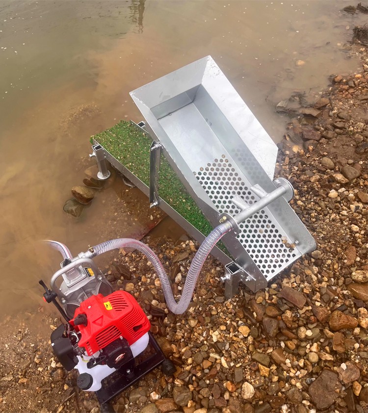 進(jìn)料裝置包括料斗和輸送機(jī)構(gòu),用于將含金砂石均勻送入溜槽。部分設(shè)備還配備篩網(wǎng),預(yù)先過濾大顆粒雜質(zhì),提高淘金效率。