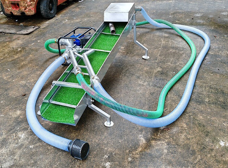 溜槽主體是核心工作區(qū),內(nèi)部鋪設(shè)耐磨襯板或波紋槽面,利用水流或振動(dòng)作用使金粒與砂石分離。金粒因密度較大沉積在捕獲區(qū),而輕質(zhì)尾礦隨水流排出。